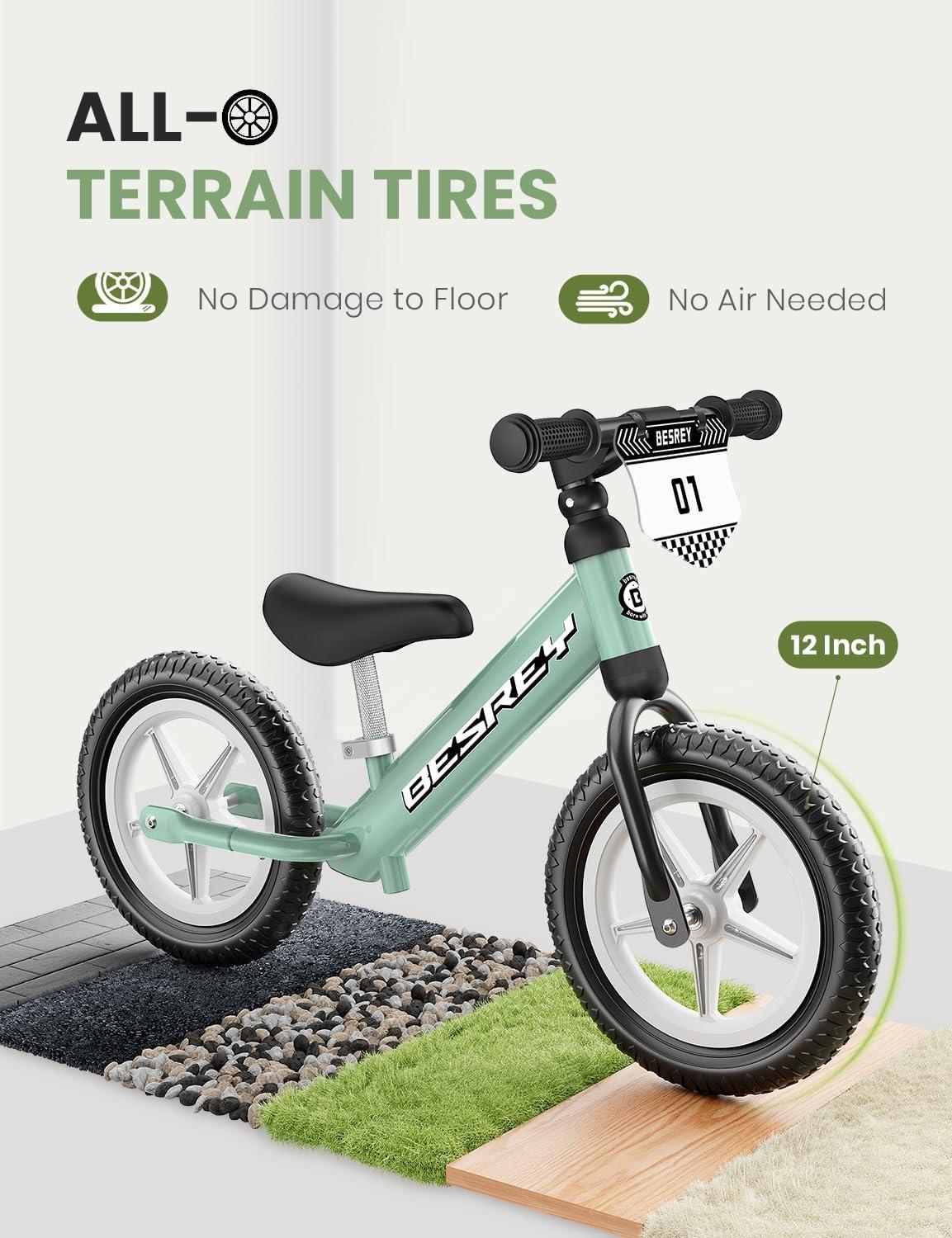 besrey Toddler Balance Bike 2 Year Old, All-Metal Frame | 12″ Motion-Activated Lighting Wheels | All-Terrain | Kids Bike with Padded Adjustable Seat | Gift Bike for Boys Girls 2 3 4 5 Years Old(Green)